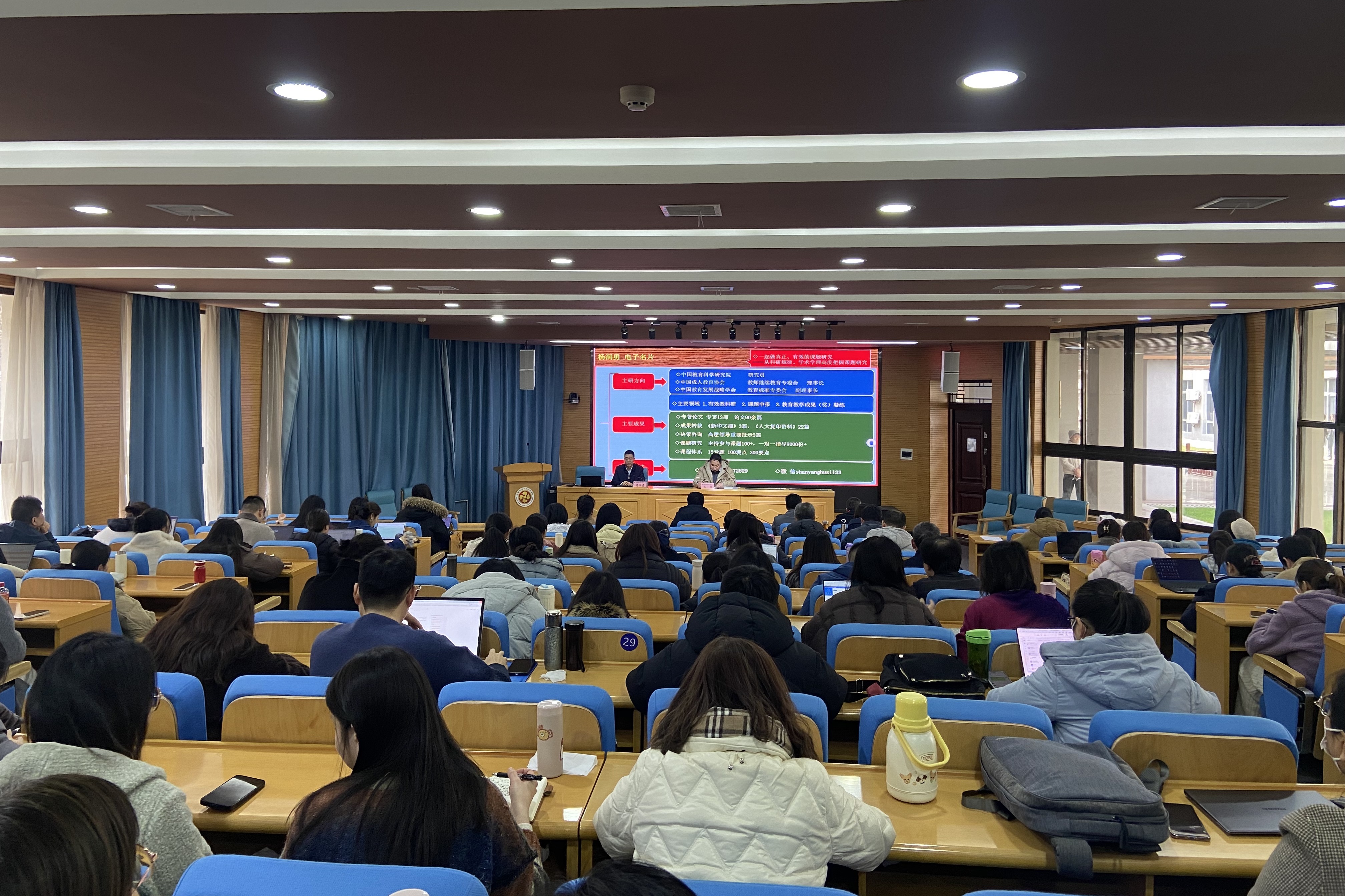 报告会上,杨教授不时提问,与参会教师实时互动,现场气氛活跃热烈。