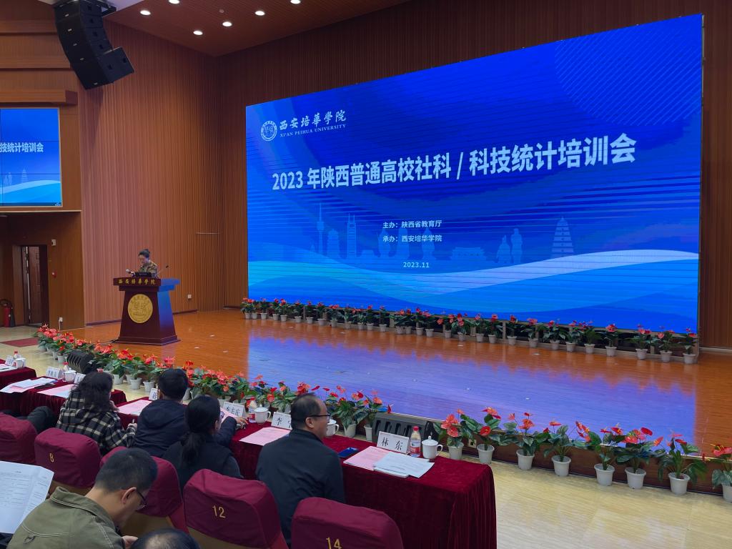 11月28日,由陕西省教育厅主办的2023年陕西普通高校社科/科技统计培训会在西安培华学院维之图书馆报告厅召开,陕西省教育厅科技处处长朱晓冬、陕西高校技术转移中心副主任蒋红等出席了会议,同有来自省内90余所高校的科技/社科处处长、200余名负责社科及科技统计工作的全省高校及其附属医院统计工作人员参加了培训。我校科研处处长操龙升及科研助理方祎前去参会。