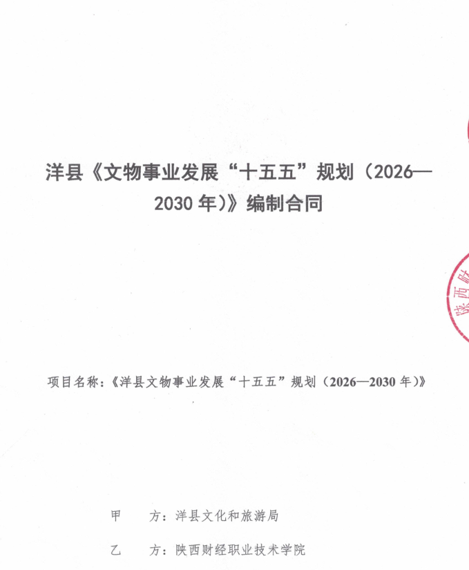 最后,陕西财经职业技术学院与洋县文化和旅游局正式签署了《“十五五”文化和旅游发展规划》和《“十五五”文物事业发展规划》委托合同,标志着双方合作进入实质性阶段。未来,双方将紧密合作,确保两个规划保质保量按时完成,为洋县文旅产业和文物事业的繁荣发展贡献力量。